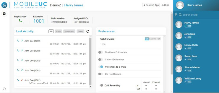 • Extension Find me Follow me, DND, Call Recording, Failover configuration